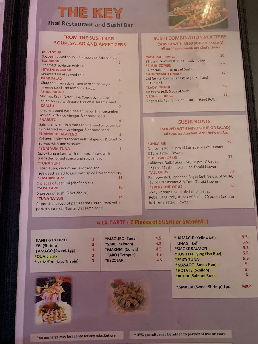 Welcome to The Key Thai Restaurant and Sushi Bar, a culinary gem nestled along the Overseas Highway in Key Largo, Florida. This restaurant is a harmonious blend of Thai and sushi offerings, satisfying diverse palates and dietary preferences.