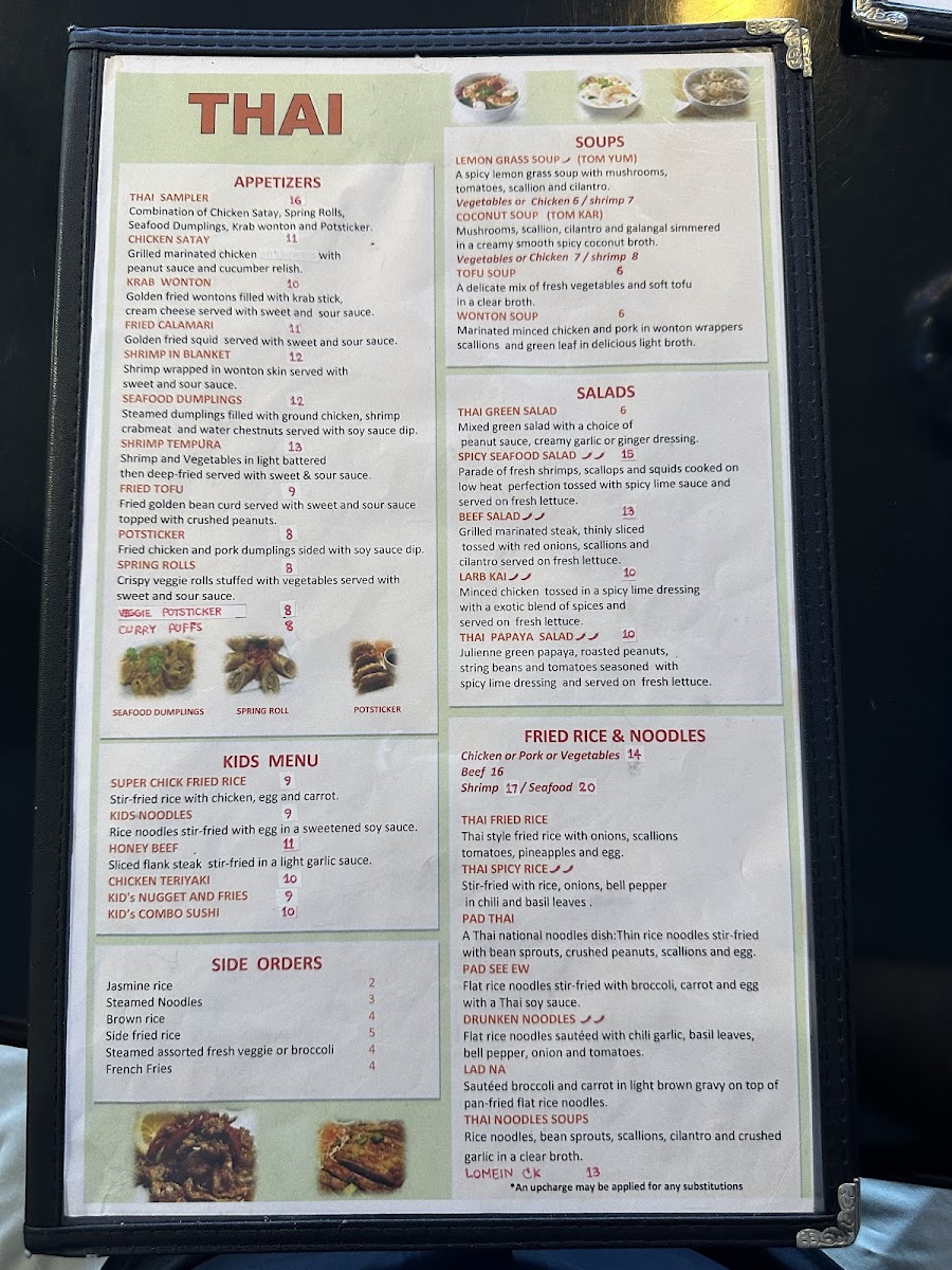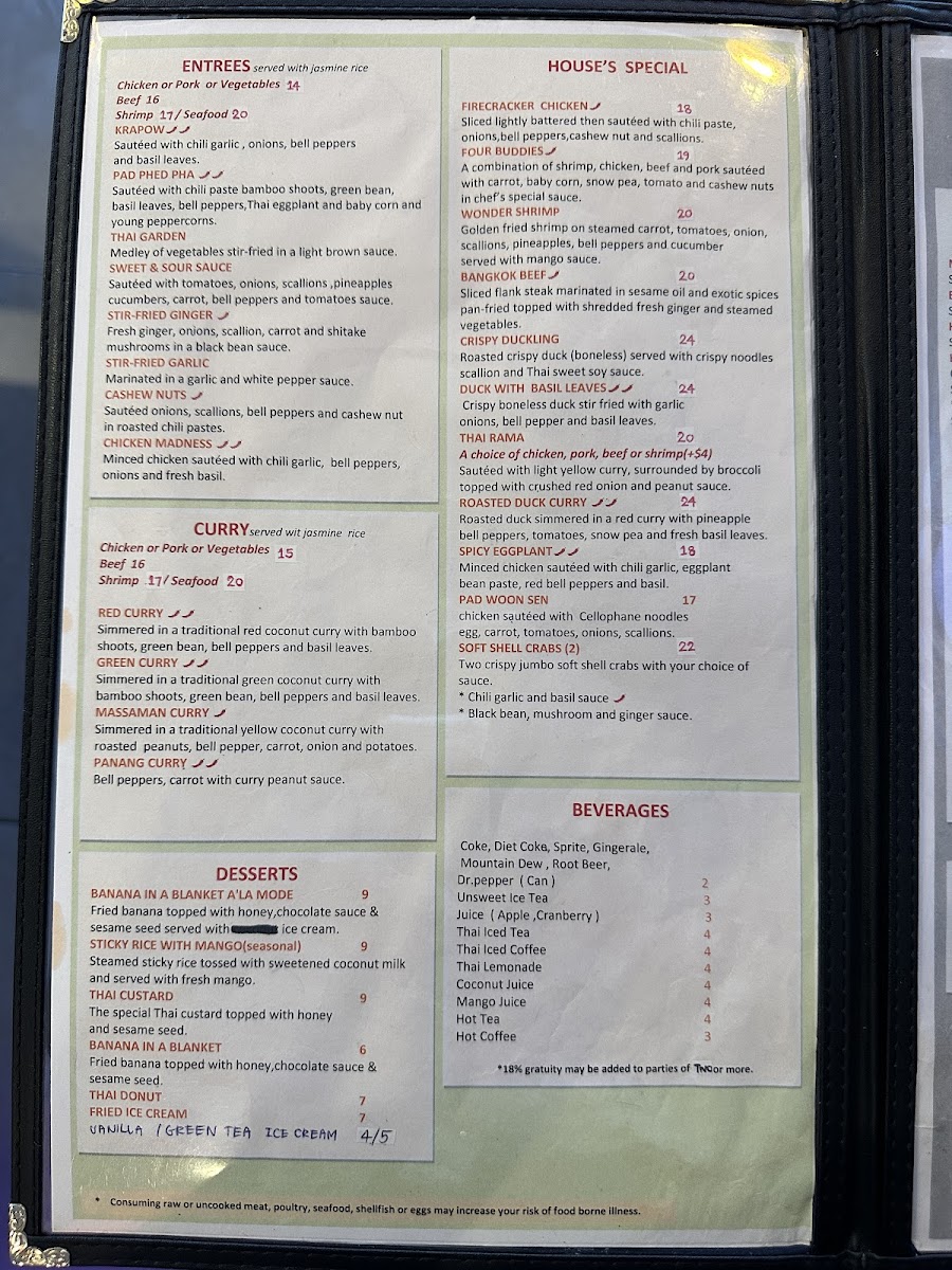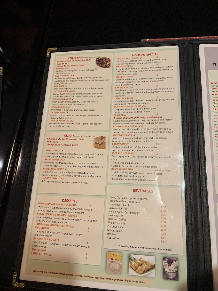 Highlights of the menu include mouthwatering dishes like Massaman Curry and Pad See Yew, praised for their vibrant flavors and generous portions. Vegetarian diners will delight in options like Fried Rice and Panaeng Curry, ensuring everyone is catered for. Sushi lovers can marvel at the freshness of the Sushi Boat, featuring an array of carefully crafted rolls like Spicy Tuna and Rainbow Rolls.